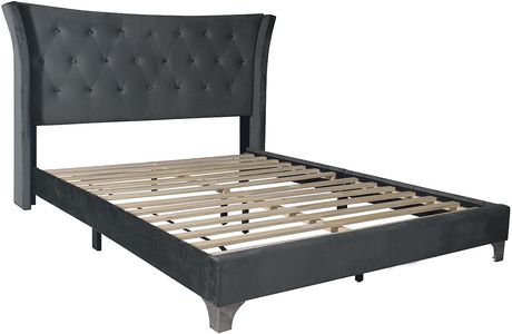 The Fabric Bed Group Danielle is an upholstered bed, wrapped in a velvet grey fabric. It promotes a contemporary design with its stylized legs, and its alluring headboard shape with a neat, tufted style.Read More