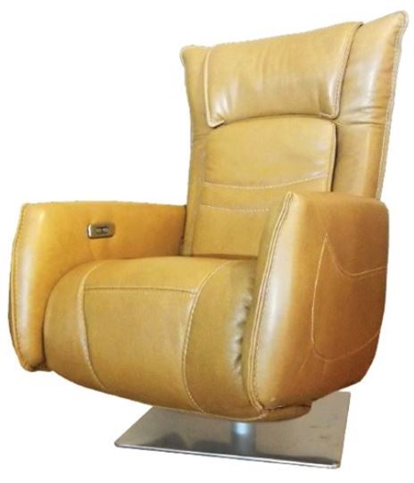Power swivel recliner with power adjustable headrest made in Canada. Recliner features a harmonized dual electric functionality, an integrated cordless battery and gel memory foam seating for ultimate comfort. It comes with a stainless steel square base. Available in multiple options of fabrics and leathers, for an upcharge.Read More