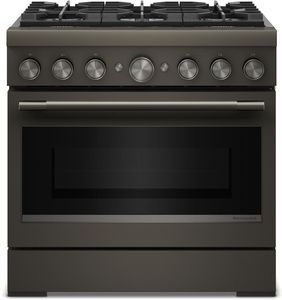 Expand your skills with a 36-inch KitchenAid® Commercial Style Range with 6 burners. This dual fuel range combines a gas cooktop with the even baking of an electric oven. Two 20,000 BTU Ultra Power™ Dual-Flame Burners offer the power and precision to successfully sear, simmer, stir-fry and sauté. Even-Heat™ True Convection gives consistent baking and roasting, plus air fry mode that yields crispy, golden results.Read More