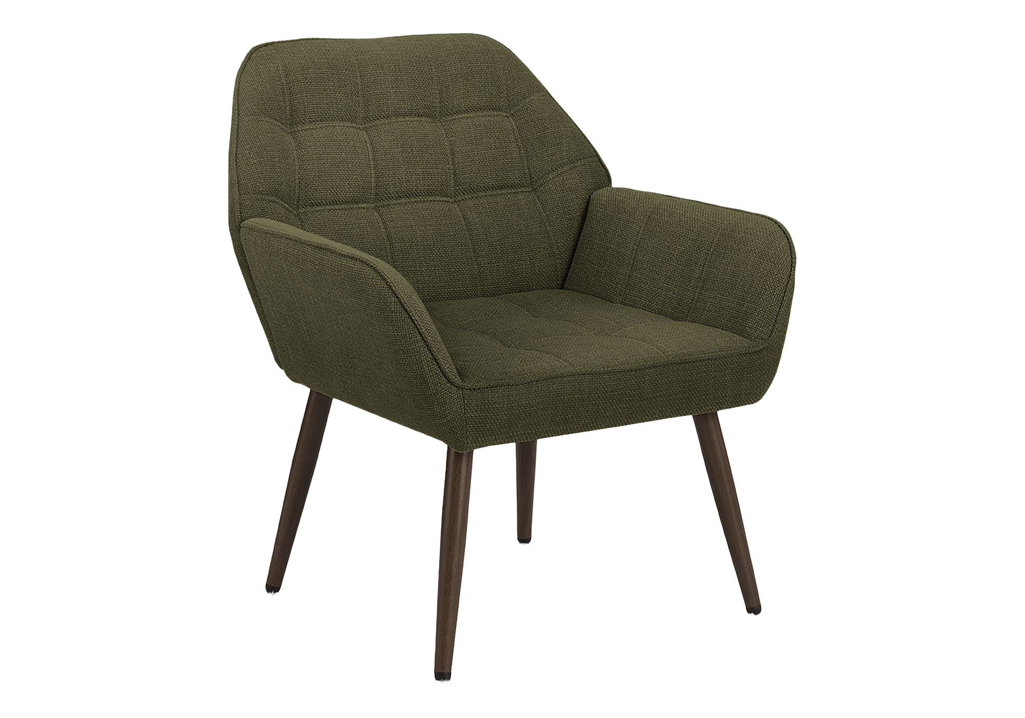 Upholstered in soft, dark green fabric, it brings comfortable warmth and sophistication to your space while blending effortlessly with contemporary décor. Plush foam cushioning and soft touch fabric create an inviting seating experience, making it the perfect place to relax at the end of the day or enjoy quiet moments at home. Durable construction ensures lasting quality, with a solid engineered wood frame paired with sleek walnut metal legs for reliable support and a clean, modern aesthetic. Thoughtfully designed for convenience, the chair is easy to assemble so you can enjoy its comfort and style without delay. Backed by a 2-year limited warranty, this accent chair offers confidence in craftsmanship and long-term enjoyment. Whether styled as a statement piece or a cozy seating option, it delivers timeless appeal, sturdy construction, and a fashionable style that completes your living space.