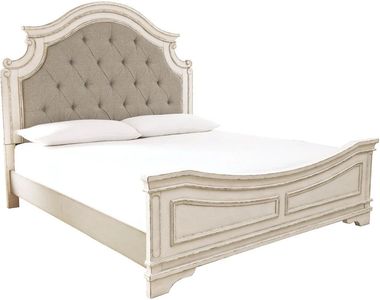 Elevating the art of traditional cottage styling, this king upholstered bed is your dream bedroom retreat realized. A curvaceous beauty, this brilliantly upholstered bed wows with dramatic scalloped details and fanciful trim work. The distressed chipped white finish charms with its heirloom appeal.Read More