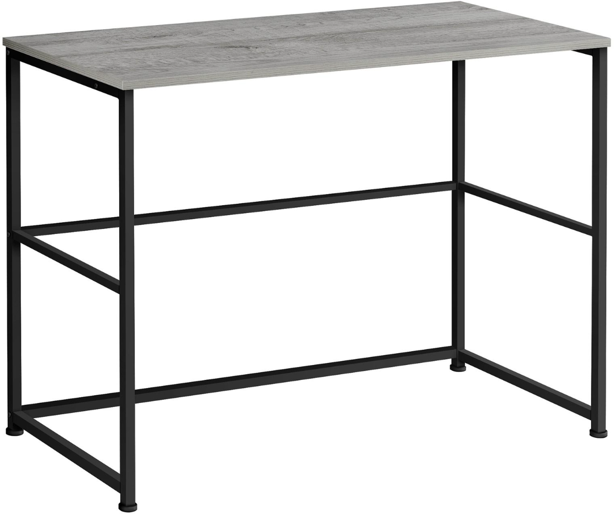 Apporter votre espace de travail à n'importe quelle pièce, du salon à la chambre à coucher, avec l'ajout de ce bureau d'ordinateur en faux bois gris et moderne. Cette table sur base noire élégante est plus solide qu'elle n'en a l'air, faite de métal solide et d'un dessus durable.Read More