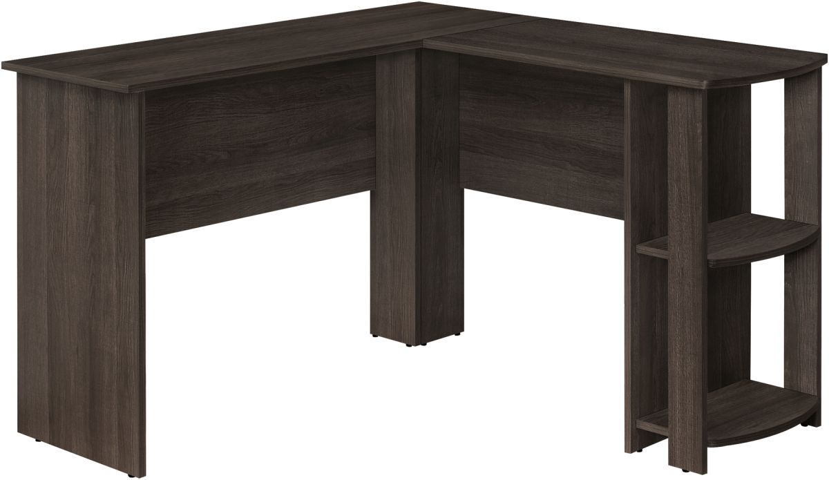 Bureau d'ordinateur en L avec rangement en finition aspect bois