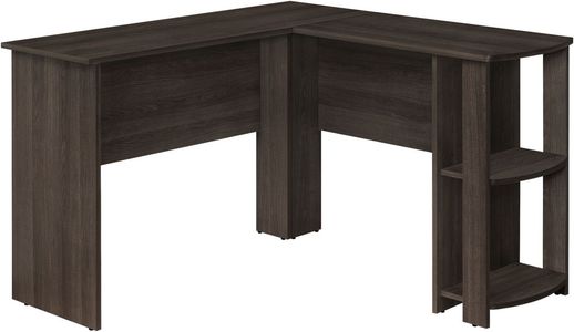 Avec une surface de travail généreuse et des rangements intégrés, ce bureau d'ordinateur en L est idéal pour les étudiants ou les bureaux à domicile disposant d'un espace limité. Deux unités de rangement pratiques permettent d'organiser proprement les livres de référence et les fournitures scolaires. Fini sur tous les côtés en stratifié aspect bois, ce bureau polyvalent et peu encombrant est conçu pour être placé dans un coin, mais peut être placé n'importe où dans une chambre d'enfant, un dortoir ou un bureau à domicile.Read More