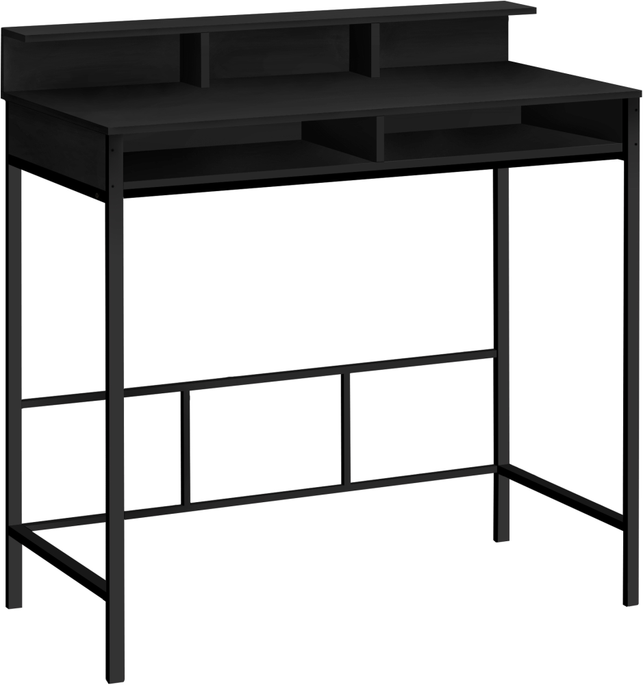 Bureau d'ordinateur pour travailler debout fini noire avec huche et 2 étagères ouvertes de rangement