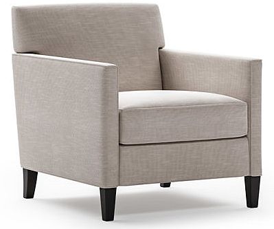 Un détail cousu incurvé enveloppe ce bras de rail mince, sur un cadre à petite échelle et à dossier serré.Read More