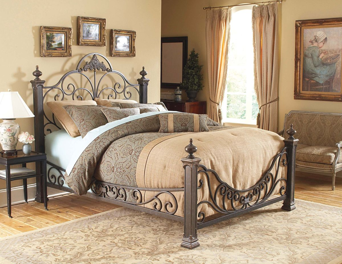 La grille de la tête de lit est ornée d'un grand moulage central et soutenue par des poteaux de 60 » de haut.